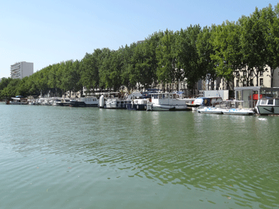 - Walk along the left bank of the bassin, Quai dee Seine, and go straight ahead as far as the first bridge you cross.