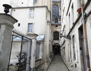 - On your left, you’ll pass by a dead-end, the Impasse Saint-Paul. Take it. At the end of it is a hidden entrance to the beautiful Saint-Paul Saint-Louis Church.